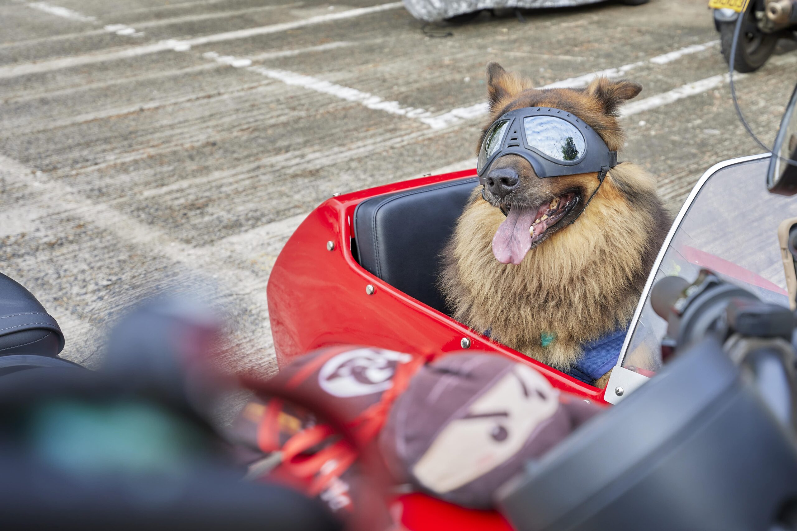 要麼上班都對著,要麼下班都要衝回家找牠,就連一個星期只放一天假都是留給大飛。在2018年,阿安用了13萬購入一部側車(Side Car) ,有一次他換電單車,在網上無意中見到它,覺得很有趣,他就想可否帶大飛一起出去遊車河,就出去看車,也帶同陳大飛一起去,牠又願意坐好,阿安就決定在車行買這架車了。 他表示,如果沒有大飛,他都不會買側車(Side Car),因為側車算是一輛沒有冷氣的私家車。側車(Side Car)本身不屬於機動三輪車,所以需要停泊在電單車位,但因為它本身很大輛,就不是所有電單車位都泊得到,所以泊車方面就比較麻煩。它沒有電單車的方便,同時沒有私家車的舒適,所以在香港,側車(Side Car)比一般電單車相對上就不太普遍了。