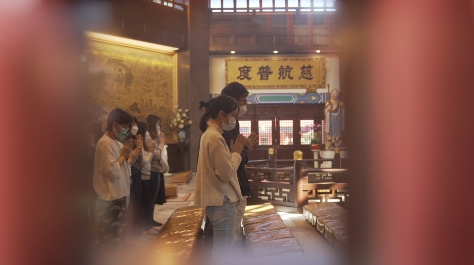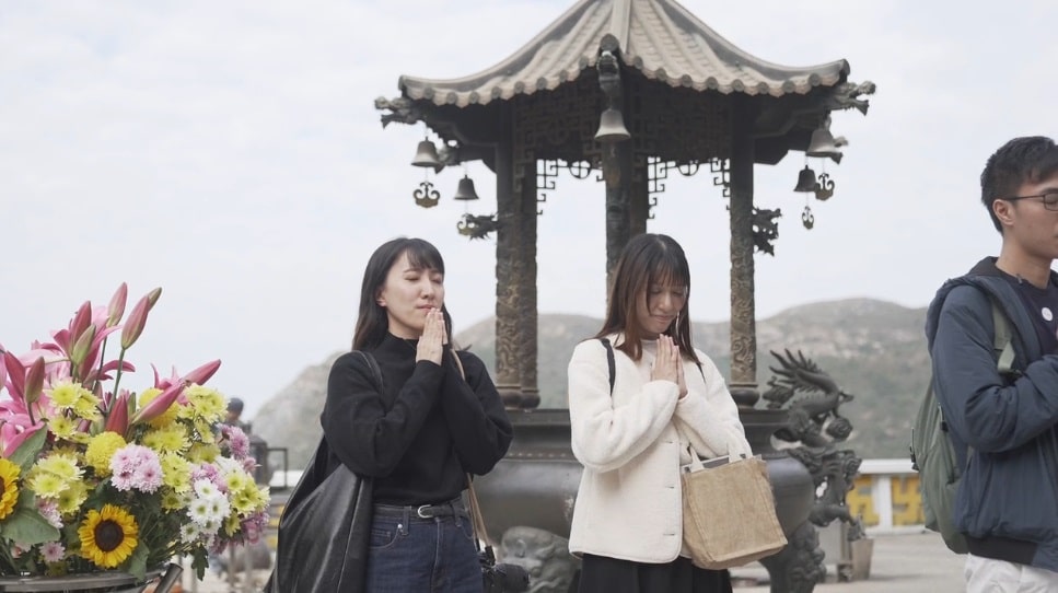星期六早上十時,大嶼山觀音寺敲鍾聲平靜地響起,大殿繚繞香烟前是批前來禮佛的年輕人,「我們先供養十方法界一切的諸佛菩薩,供養西方極樂世界。」大隊一起禮佛,到寺中結手印問訊,再環寺廟繞佛,年輕人與老佛寺形成有趣的畫面。隊伍領頭人是今年27歲的何昊禧(Raphael),他是位註冊社工,同時有個特別身份,是個有3萬多人追蹤的年輕佛教平台「佛繫」的創辦人。「佛繫」表面寫愛情語錄,其實希望以生活化的佛法點化眾生。同時團隊每月也辦免費團帶年輕人遊覽觀音寺,辦佛法分享交流、線上共修等,「我們雖然外表很年輕,其實內心是個『老靈魂』,50年後應該都是這模樣。」
