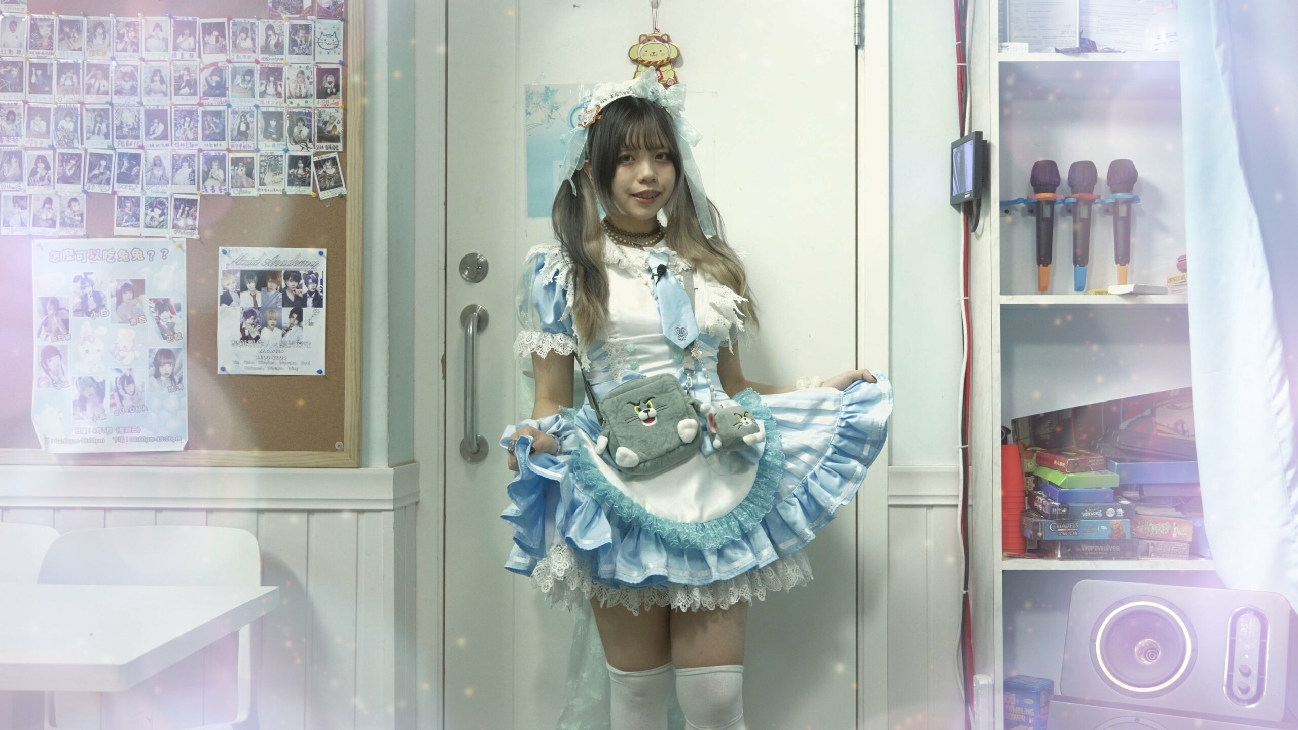 女僕咖啡店因為種類眾多而沒有一個準確的定義,簡單來說是一個透過角色扮演,營造進入另一個世界氣氛的地方,可能有人以為被「治癒」的只有客人,其實女僕都有「行開下」走出平日身分的感覺。「童年,我多數是自己一個人照顧自己,因為媽媽可能早上10時就出工作深夜二時才回來,我一個人在家的時候就看電視。」Emon笑道,除了在大排檔的時候能見到媽媽,童年的大部份時間都是電視卡通陪她度過。「小學時看那套《東京喵喵》她們穿的衣服很漂亮,而且她們的性格又很堅強,我很憧憬當這種女生,當我長大一點5、6年級又有多點零用錢的時候,我就邀請班上愛看漫畫的幾位同學一同到女僕咖啡店。」Emon當時年幼的腦袋中,女僕是精緻、優雅的象徵,而女僕咖啡店又好像讓她逃離現實的地方。「所以我一滿15歲數的時候,就立刻去了女僕咖啡店面試。」Emon這個名字是在當女僕時所取的名字,「對我來說Emon比較像我理想中的自己,比較溫柔情商比較高還有可愛,又或者是用來給我喘息的一個我自己,可以短暫令我忘記現實中的煩惱之類。」但Emon在廟街大排檔打滾長大,令她在當一位嬌滴滴女僕的時候仍然流露著霸氣,「有一些不乖的主人曾經跟蹤女僕,亦試過有位不乖的主人拿著鎅刀在外面等女僕,遇到這些情況我會說:『交給我處理,你們不要自己走出去』,因為我不會害怕,我在廟街有甚麼沒見過。」