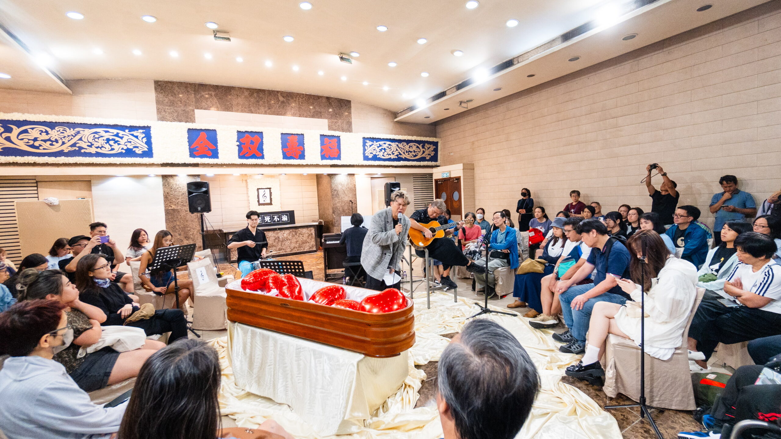 66年歷史九龍殯儀館揭秘!殯儀界crossover搞開放日 與歌手合作搞殯儀音樂會 「大酒店」導賞團 推生死教育 前娛樂公司經理人入行做殯儀 IT人轉行做殯儀館管理人 搞殯儀網購紙紮代燒衣 最前衛殯儀館推紙紮燒賣 搞燒街衣活動保育文化習俗 情人節靈車送花推生教育 有想過殯儀館,可以走得有幾前? 在靈堂唱「係咁先啦」「活著VIVA」的片段,最近在網上引起熱烈討論。那是來自九龍殯儀館開放日中音樂會的一幕。表演者除了本地樂隊「享樂團」,還有兩位殯儀界從業員,陳欣和Penny。
