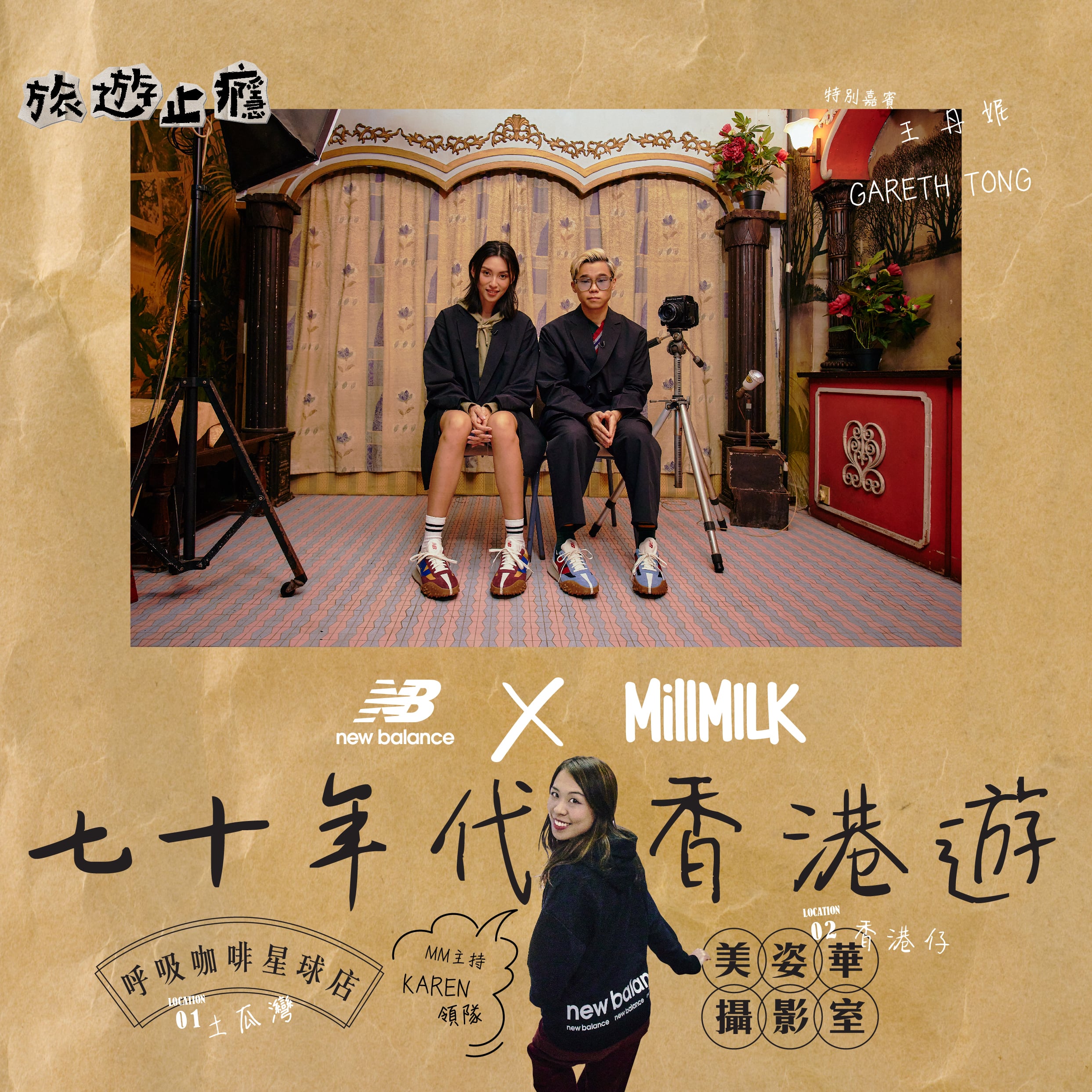 70年代是香港一個標誌性時期,教育、住屋、民生到家裡的電視機,都是在這十年間建立。今集《旅遊止癮》,New Balance邀請了MM主持Karen,和兩位跟70年代造型完全沒有違和感的特別嘉賓,包括演活了一代天后梅艷芳而被提名第40屆香港電影金像奬最佳女主角的王丹妮(Louise),以及香港新生代最具潛力的R&B天才音樂人湯令山(Gareth.T), 一齊帶大家尋找70年代曾經出現的事物。